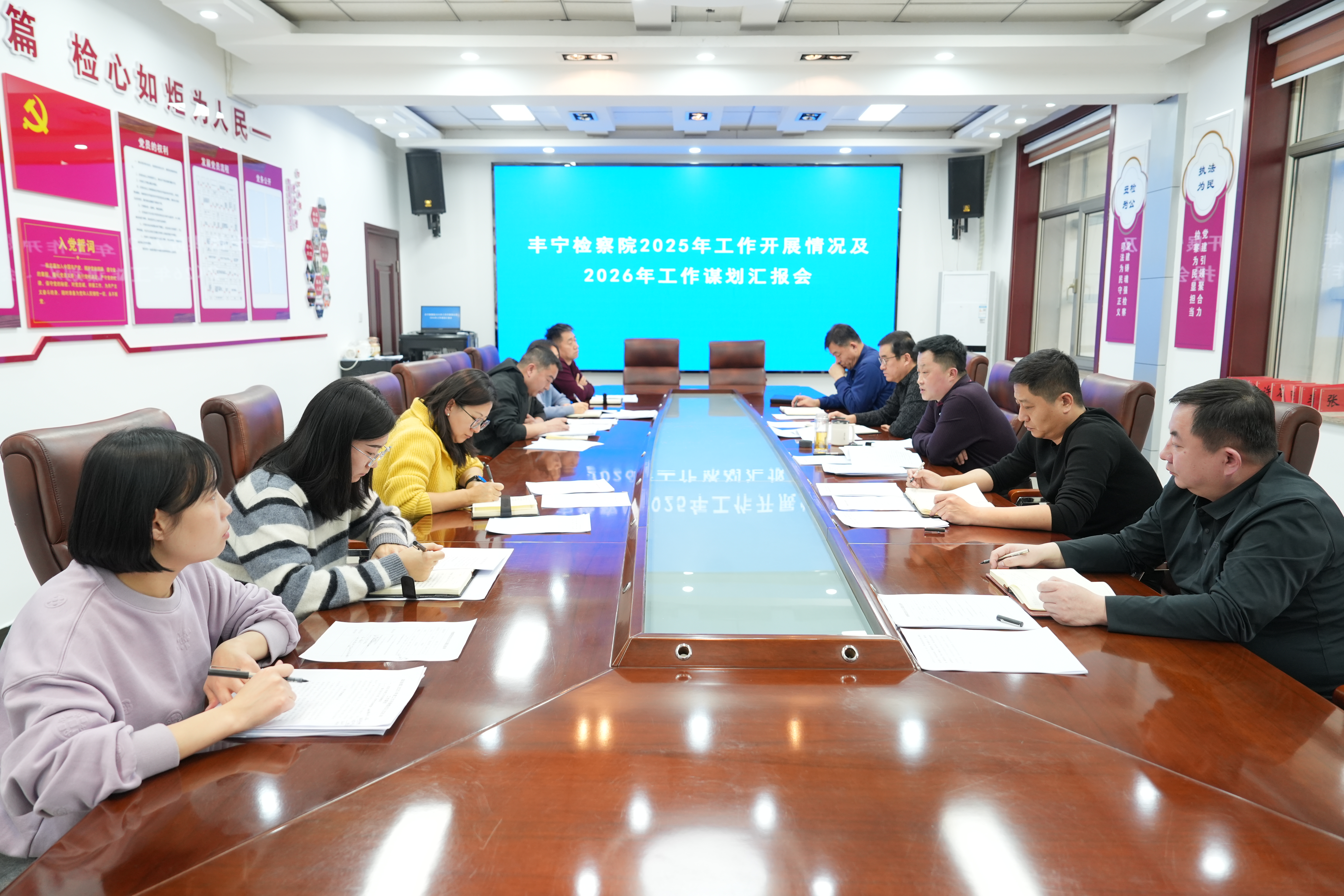 为全面复盘2025年度检察工作成效,精准谋划2026年检察工作方向,1月12日下午,丰宁满族自治县人民检察院召开2025年工作开展情况及2026年工作谋划汇报会。院党组书记、检察长周建成主持会议,班子成员、各部门主任参加会议。